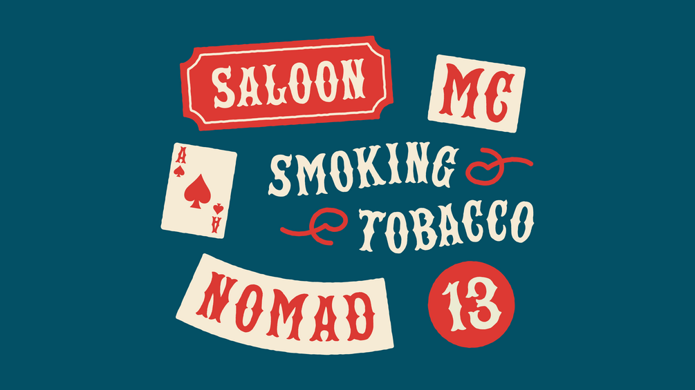 Bone Marrow is a tuscan style font inspired by westerns, cowboys, carnival posters and outlaw motorcycle clubs of the early 1950s & 1960s.